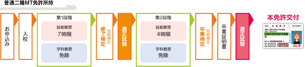 第2段階の技能と学科をすべて受講すると、卒業検定を受検できます。(受付で予約)