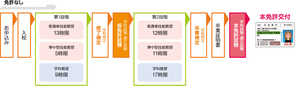 普通車技能 12時限 準中型技能 11時限 学科 17時限 |